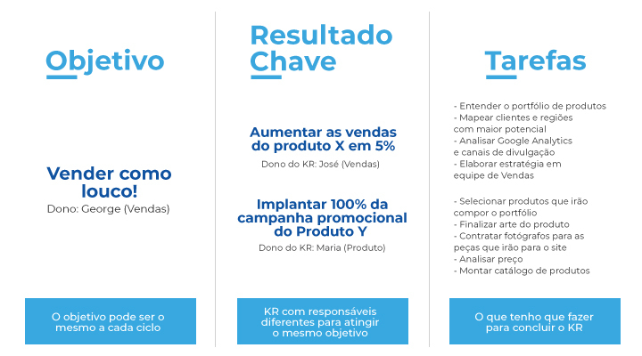 Os resultados-chave são os critérios de sucesso dos objetivos. São quantitativos, e por isso, mensuráveis.